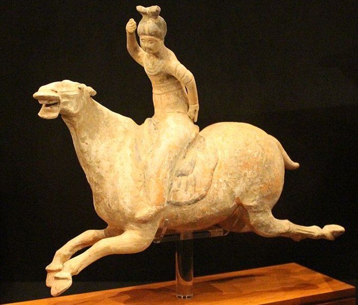 Tang Dynasty earthenware determine of a feminine polo participant on a horse. (Einarspetz/Wikimedia Commons/CC BY three.zero)