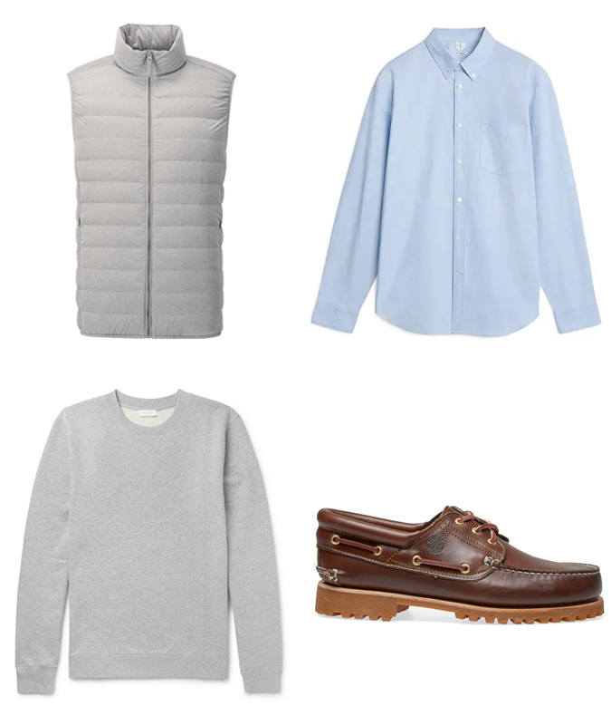 Begin off with a plain Oxford shirt in white or gentle blue; you’ll be able to layer it beneath a crewneck sweater on colder days. A down gilet will assist to tie the look collectively and create a way of depth via layering. For the legwear, a beige or navy chino is the plain selection, completed off with a traditional boat shoe. Go for one thing with a thicker tread to see you thru the winter months.