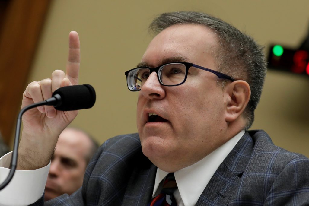 EPA Administrator Andrew Wheeler testifies earlier than a Home Power and Commerce Surroundings and Local weather Change Subcommittee listening to in Washington, U.S., April 9, 2019. REUTERS/Yuri Gripas.