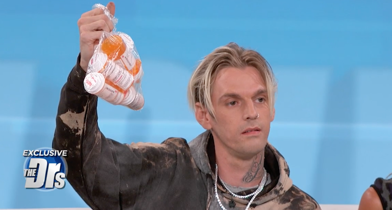 Carter, who’s struggled with dependancy and excessive weight reduction up to now, stated he’s now taking six completely different medication to assist stabilize his well being. “I’m prescribed to Xanax, Seroquel, gabapentin, hydroxyzine, trazodone, omeprazole,” he defined to point out hosts Dr. Travis Stork and Dr. Judy Ho, whereas holding up a Ziploc bag of bottled drugs.