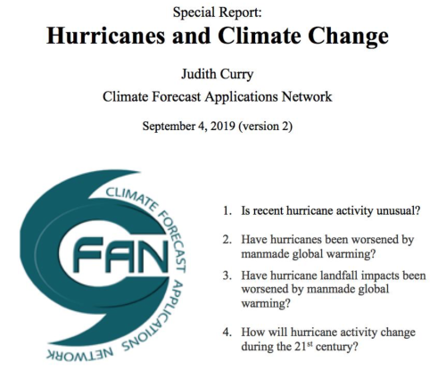 New assertion from GFDL: For a couple of decade (and even longer), the NOAA GFDL group has yearly up to date their assertion on hurricanes and local weather change https://wattsupwiththat.com/2019/09/07/alarmism-enforcement-on-hurricanes-and-global-warming/.