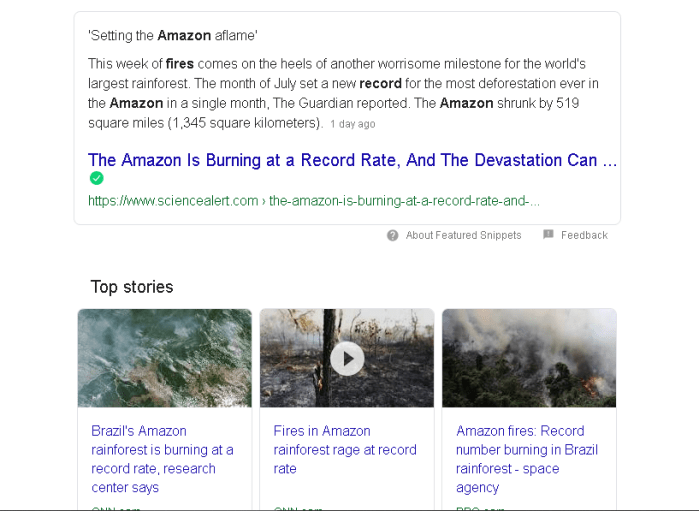 Fig 1: Display Shot of Google Search (search time period: Amazon Fires at Document)
