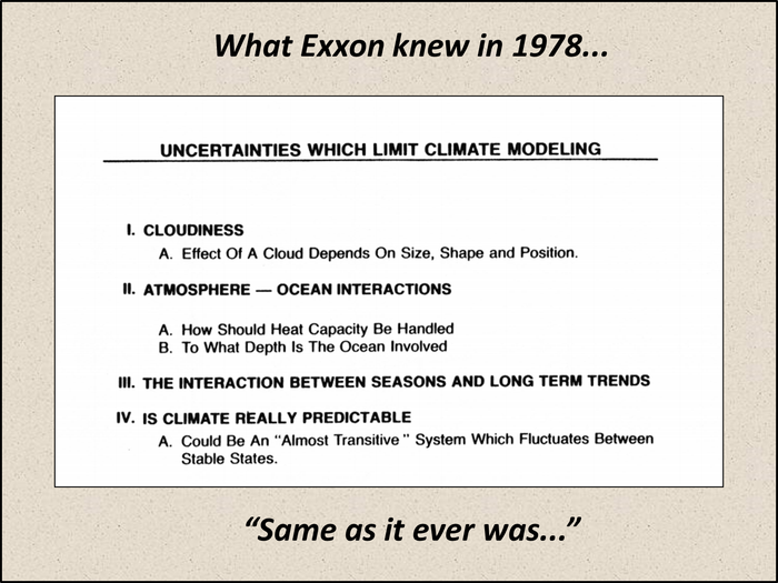 By 1978, Exxon knew that Gorebal Warming was 97% horst schist and that future local weather fashions would fail miserably.