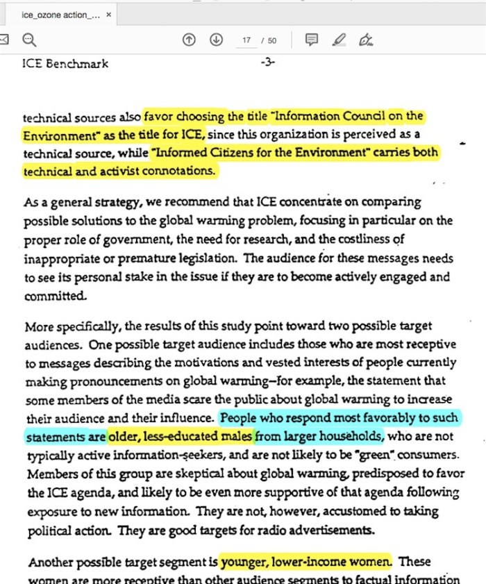 Particularly, the collective “How They Made Us Doubt All the things” sequence of podcasts locations a lot inventory within the unsolicited, by no means used (let me emphasize once more alternatively, from the by no means applied memo set) proposal submitted to be used within the previous, hardly seen “Info Council for the Surroundings” pilot mission public relations marketing campaign, that they quoted its supposedly sinister audience purpose three separate occasions.