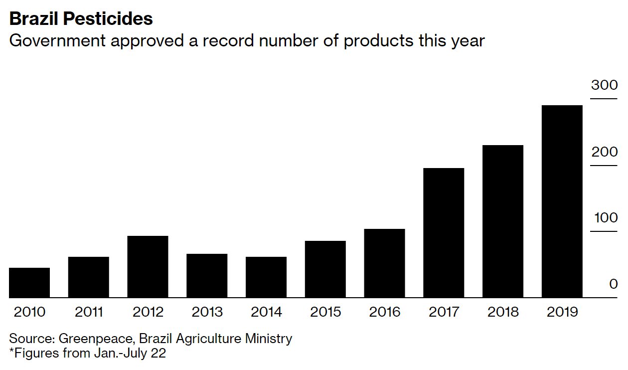 Since President Jair Bolsonaro took workplace in January, Brazil has permitted gross sales of a report 290 pesticides, up 27 % over the identical interval final 12 months, and a invoice in Congress would loosen up requirements even additional.