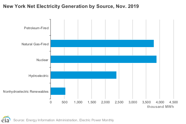 70% of New York’s 2017 power consumption was from fossil fuels. 72% of the state’s electrical energy is generated by fossil fuels and nuclear energy; whereas solely 5% comes from non-hydroelectric renewables .