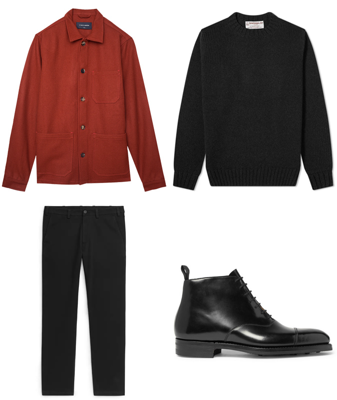 For a easy smart-casual look, workforce darkish indigo denim with a black pair of Oxford boots, darkish knitwear and a tonal jacket. A suede bomber jacket or wool overshirt would work effectively.