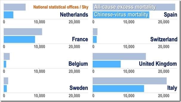 Now, simply 4 weeks later, the very sharp improve in extra deaths not solely in Britain but additionally in different European nations reveals that the victims of the Chinese language virus are dying considerably sooner with the virus than with out it.