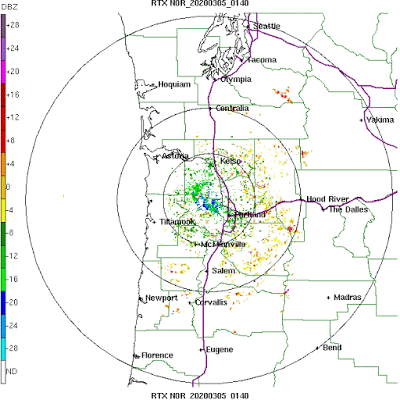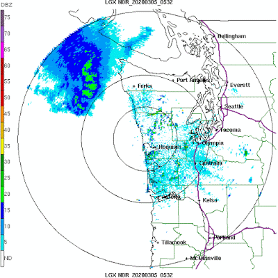 The Hoquiam (Langley Hill) radar confirmed the birds as nicely– listed here are the radar returns (known as reflectivity) at 9:32 PM Wednesday night time. The sunshine blue are birds. They don’t seem to be going very far offshore.