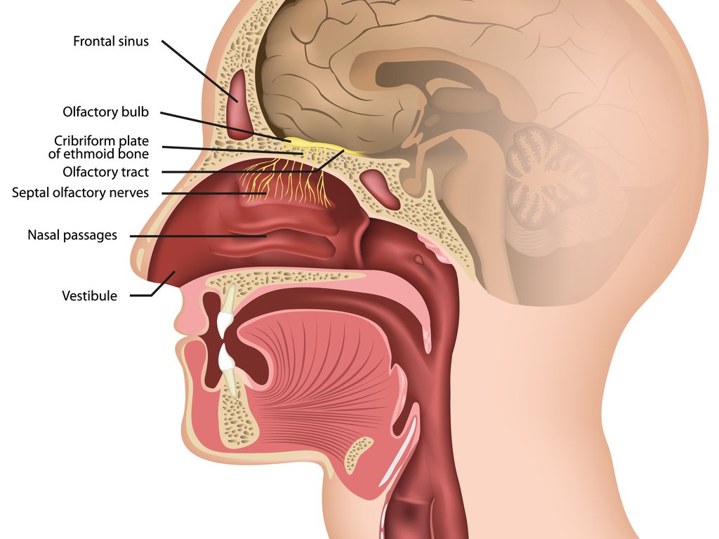 Location of the olfactory bulb. (medicalstocks/iStock/Getty Photographs Plus)