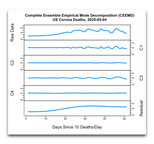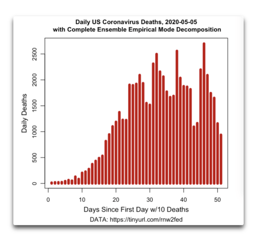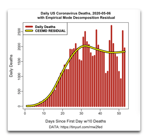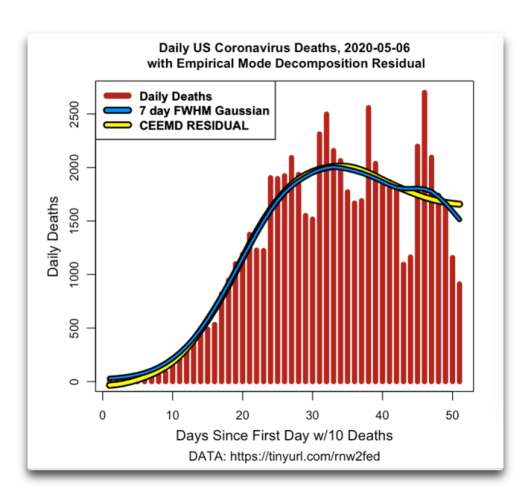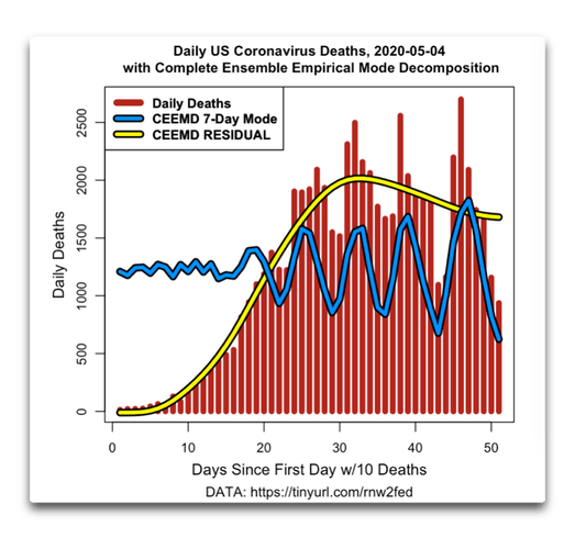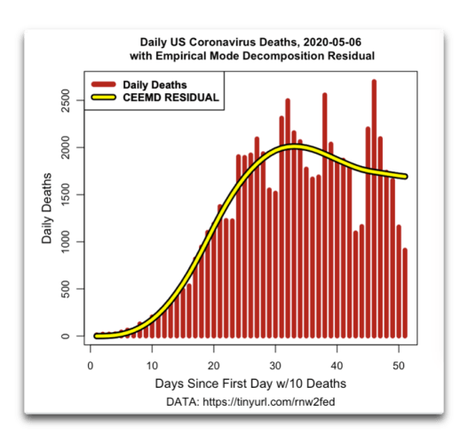 Determine four. US day by day deaths, together with the CEEMD residual. Information from Might 4th, analyzed Might sixth.