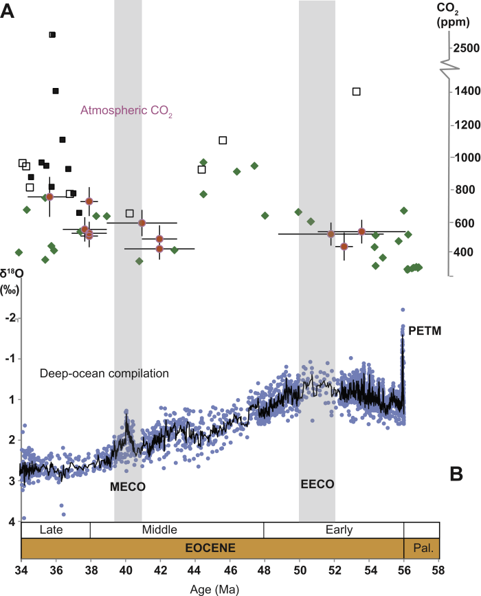 Essentially the most hanging characteristic of the Eocene stomatal proxy file is that a few of the highest pCO2 is indicated within the early center Eocene (till ca. 46–44 Ma), nicely past the tip of the EECO…
