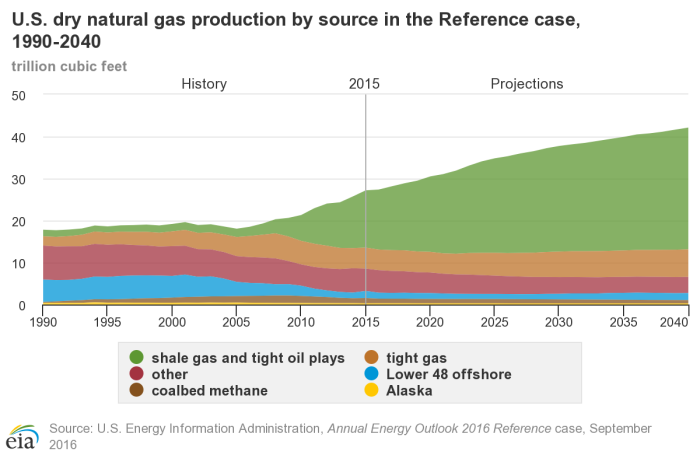 Lastly, and most significantly, the considerable portions of pure fuel contained in shale deposits have been unlocked by combining hydraulic fracturing with horizontal drilling. Whereas the mix of those applied sciences has been used for many years, it was perfected for shales about 10 years in the past. The result’s a whole change within the vitality outlook for america, and plenty of international locations on this planet for that matter.