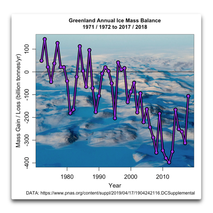 Let me begin with a take a look at the mass stability of the Greenland ice sheet since 1972. Right here’s that knowledge.