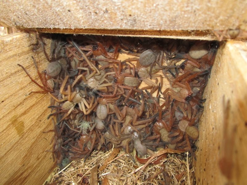 “They seem to be a species of huntsman that dwell collectively, usually underneath the bark of timber,” Sanders wrote in a weblog submit. “Within the restored space tree bark is briefly provide at current they usually’ve discovered the wood bins appropriate.”