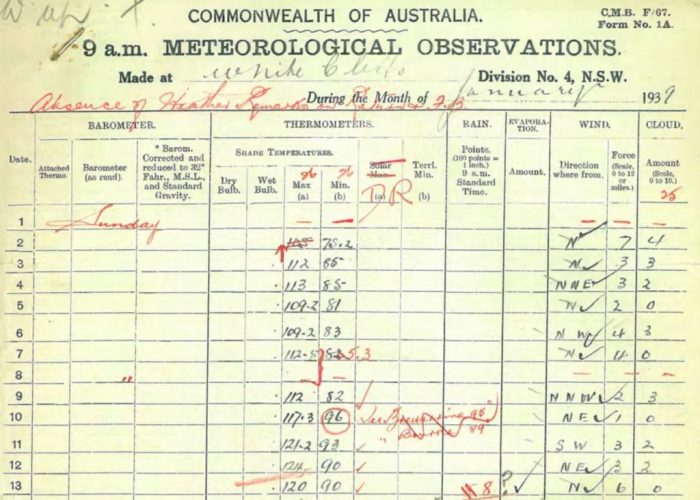 Not solely has Mr Kelly MP tracked-down the meteorological observations e book for Brewarrina, however over the past week he has additionally uncovered that 51.1°C (124°F) was recorded at White Cliffs for Wednesday 11th January 1939. That is the second hottest ever!