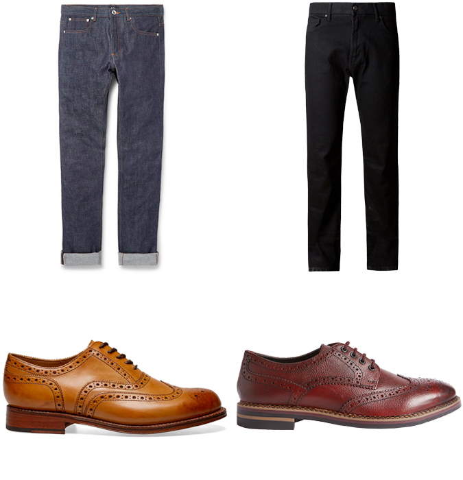 After a failsafe mixture? Whereas comparatively informal tan brogues are unsuitable for good navy tailoring – please cease doing this – they pair pleasingly with smart-casual indigo denim. Bonus factors if the sneakers’ shade picks out the denims’ stitching.