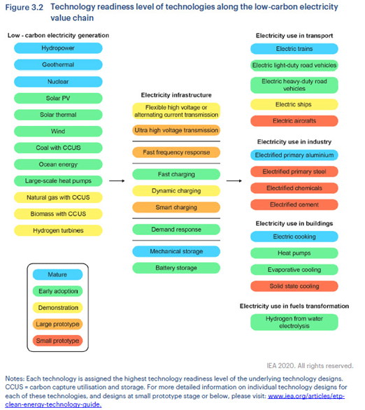 The Worldwide Power Company (IEA) not too long ago revealed “Particular Report on Clear Power Innovation” that concludes that innovation is important for jurisdictions and firms to satisfy their de-carbonization targets. Whereas the authors couldn’t preserve from utilizing the Covid-19 disaster as a name for extra innovation, the report does present helpful reference data on the technical readiness of decarbonization applied sciences.