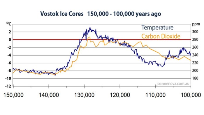 Based on MacDonald, carbon dioxide (CO2) and temperature knowledge on a geologic scale will not be related to any dialogue regarding our altering local weather. Solely knowledge since man appeared on Earth needs to be included and pertinent.