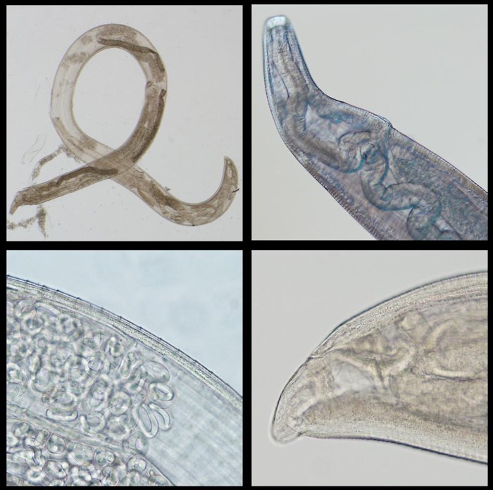 T. gulosa feminine worm, revealing ovaries containing spirurid eggs and larvae at bottom-left. (Bradbury et al., Medical Infectious Illnesses, 2019)