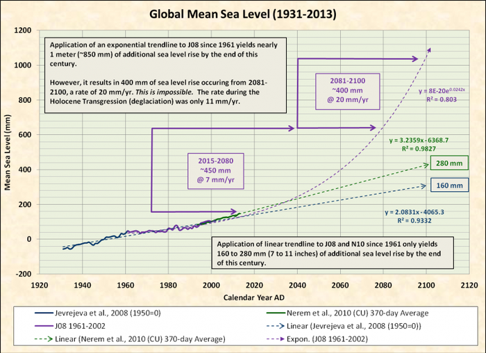 At 2.84 mm/yr, it’s going to take 215 years for sea stage to rise by 2 ft. For sea stage to rise 2 ft in 20 years, it must rise at a charge of 30.5 mm/yr.