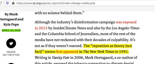 Investigators want solely go straight to Hertsgaard’s April 22, 2019 Columbia Journalism Overview announcement in regards to the formation of Protecting Local weather Now to see how Hertsgaard himself disproved his personal previous assertion (and Al Gore’s, for that matter) about Gelbspan being the primary to show this so-called ‘leaked memo.’