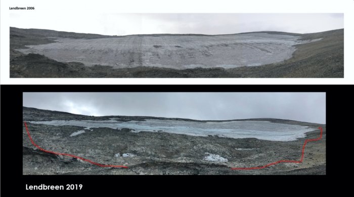 The ice patch in 2006 (high) and 2019 (backside). (Espen Finstad/secretsoftheice.com)
