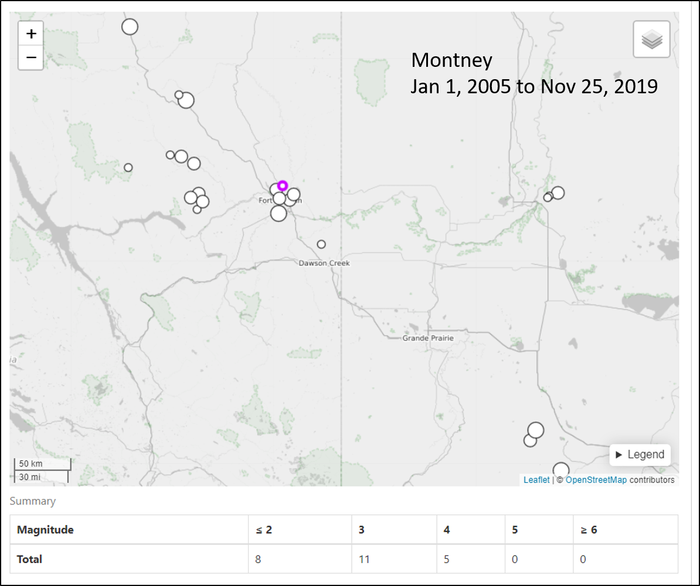 Pure Sources Canada has a searchable earthquake database (Earthquakes Canada). I downloaded the info for 3 time intervals for the Lat-Lon vary of the map in Determine 2. The database solely contains 80 earthquakes from 1985-2019, far lower than the 200+ induced quakes asserted by the BCOGC. The extra quakes have been of too low magnitude to register within the nationwide database.