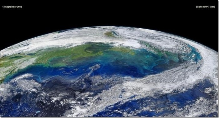 Researchers led by Princeton College examined a variety of attainable climate-related impacts on the ocean to foretell when these impacts are prone to happen. Some impacts – comparable to sea temperature rise and acidification – have already begun whereas others, like adjustments to microbial productiveness, which serves as the premise of the marine meals net, will occur over the following century. Photos from NASA EarthData present ocean colour, an indicator of microbial productiveness.Credit score NASA