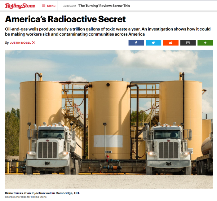 Radioactivity was first found in crude oil, from a effectively in Ontario, as early as 1904, and radioactivity in brine was reported as early because the 1930s. By the 1960s, U.S. authorities geologists had discovered uranium in oil-bearing layers in Michigan, Tennessee, Oklahoma, and Texas. Within the early 1970s, Exxon discovered radioactivity was increase in pumps and compressors at most of its gasoline crops. “Nearly all supplies of curiosity and use to the petroleum business comprise measurable portions of radionuclides,” states a never-publicly launched 1982 report by the American Petroleum Institute, the business’s principal commerce group, handed to Rolling Stone by a former state regulator.