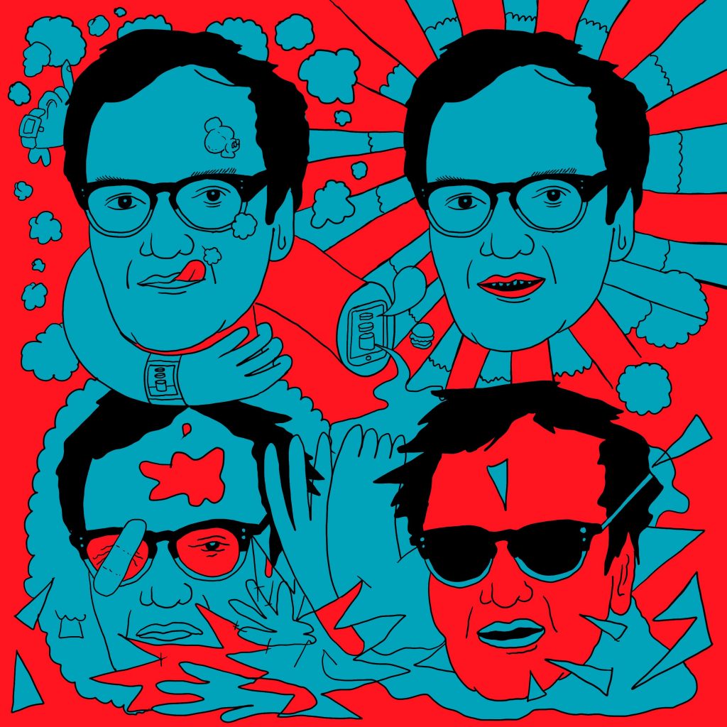 5 dudes in thrifty, black fits stroll towards the body, laptops and Blu-Rays in hand. Esoteric Ennio Morricone pulsates over the scene. Blake Goble is MR. PURPLE. Randall Colburn is CANDY COLBURN. Dan Caffrey is DJANIEL. Dominick Suzanne-Mayer is NOT-THE-BRIDE. And becoming a member of them to the left is Michael Roffman as RICK ROFFMAN.