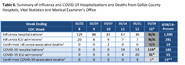 Dallas County Well being and Human Providers 2019 Novel Coronavirus (COVID‐19) and Influenza Abstract, March 31, 2019