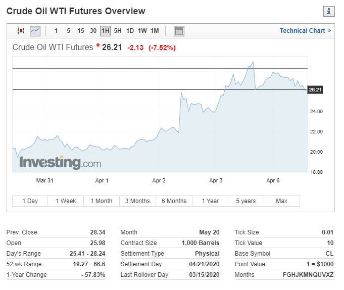 Regardless of oil’s practically 25% acquire, the contract did shut off its highest stage of the day as merchants questioned whether or not a reduce of the magnitude Trump is suggesting was even believable, particularly if the U.S. doesn’t take part. The administration wouldn’t, in truth, ask home producers to chop manufacturing, in accordance with a Reuters report.