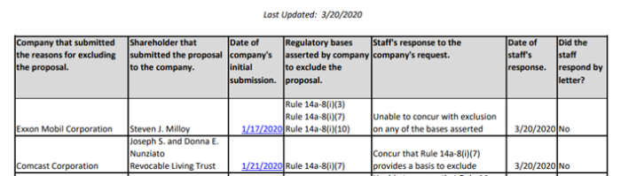 Exxon Mobil submitted a request to the SEC to exclude Milloy’s proposal from the shareholder assembly, scheduled for Could 27, 2020. The SEC dominated in Milloy’s favor as you’ll be able to see in Determine 1.
