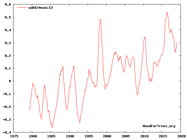 Determine 1. UAH v6.zero (°C), 12-month operating common, Wooden for Bushes