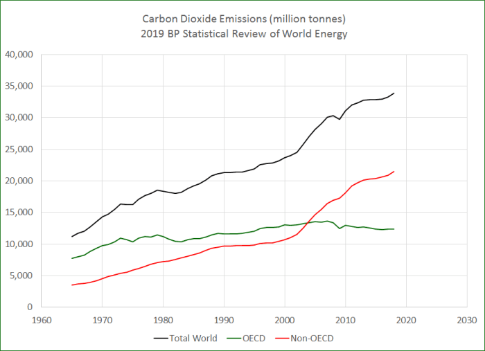 Determine four. International carbon dioxide emissions (BP Statistical Evaluate of World Power)