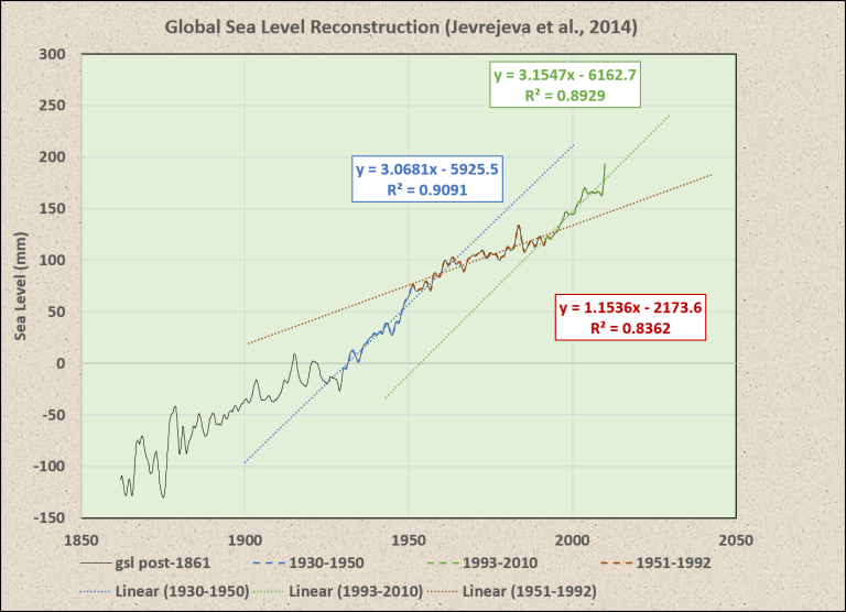 Determine 6. Sea stage reconstruction from tide gauge information (Jevrejeva et al., 2014). Word rock choose added for scale.