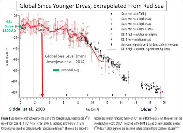 Determine 7. J14 reveals alternating intervals of quick (~three mm/yr) and sluggish (~1 mm/yr) of sea stage rise.