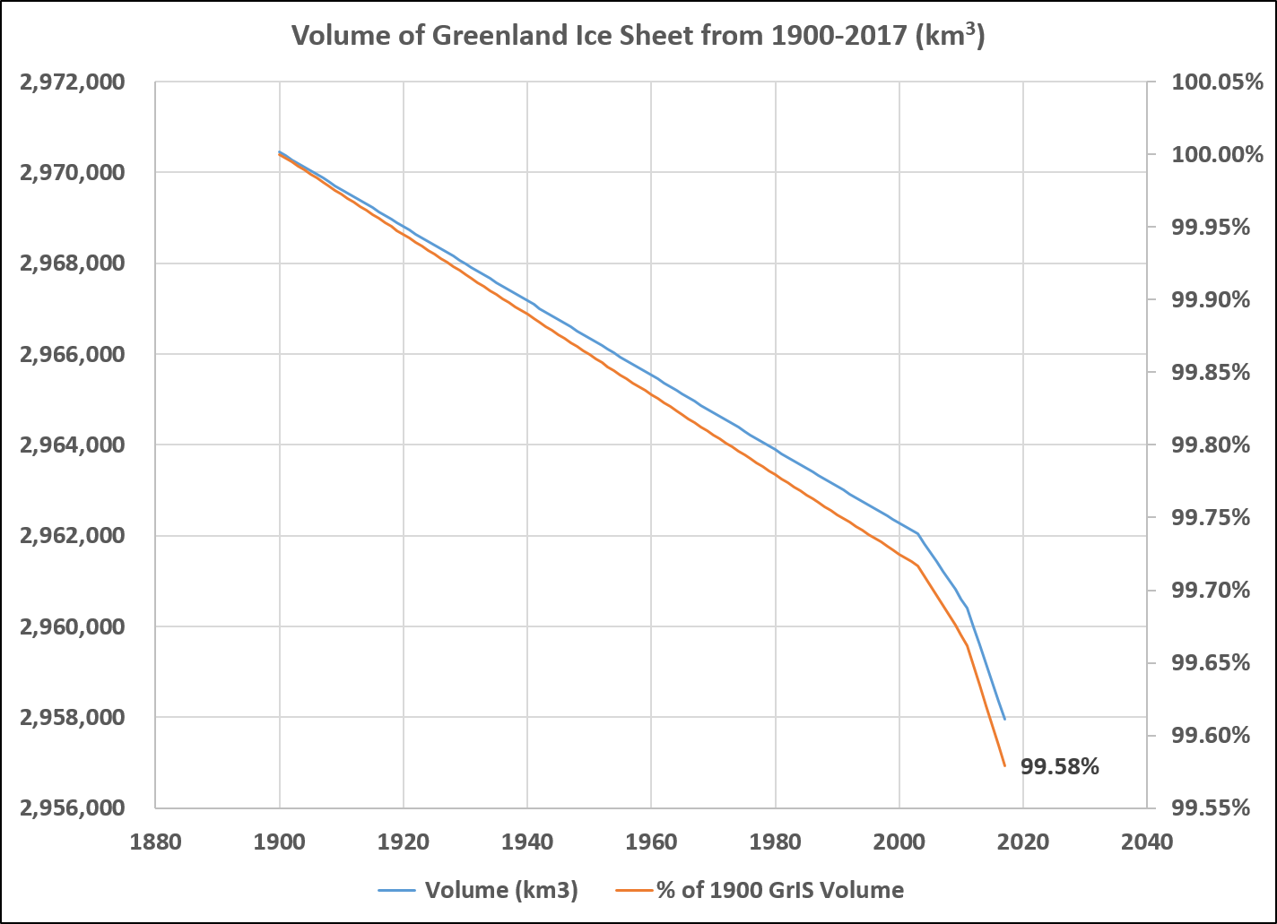 Determine 9. 99.58% of the Greenland Ice Sheet has not melted since 1900. (A Geological Perspective of the Greenland Ice Sheet)