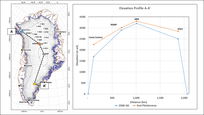 Listed below are elevation profiles for the tip of the Pleistocene and 2000 AD.