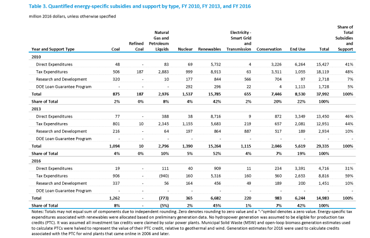 The U.S. authorities spent subsequent to nothing on fossil gas subsidies in FY2016 (the newest report).
