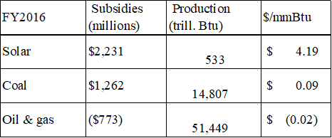 The FY2016 numbers really replicate a detrimental subsidy for pure fuel and petroleum liquids. In addition they point out that the photo voltaic subsidy has “fallen” to $four.19/mmBtu. The subsidy for solar energy is about 1/three greater than the wellhead worth for pure fuel.