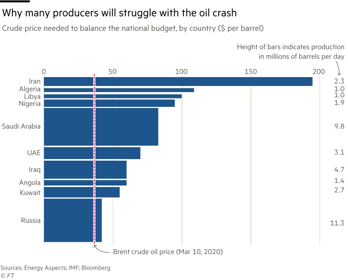 Determine 5. Oil worth required to stability nationwide budgets. Monetary Occasions