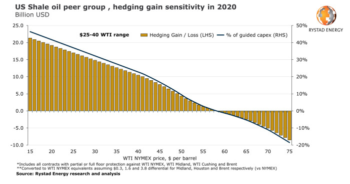 Despite the fact that oil costs plunged to as little as $30 per barrel this week and are prone to go even decrease as OPEC+ plans to extend manufacturing from April, US shale oil operators count on to avoid wasting billions in record-high hedging good points in 2020, a Rystad Power affect evaluation reveals.