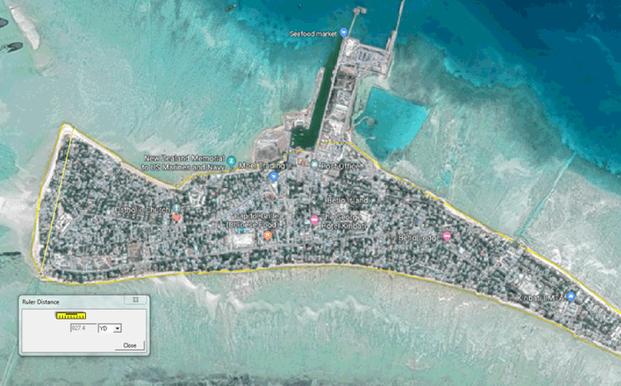 Determine 5a. Betio: 2.6 miles lengthy in 2019.