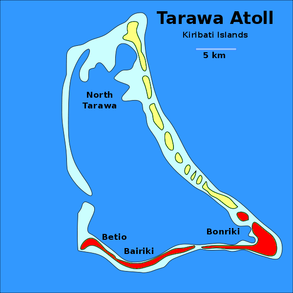 Determine 1. Tarawa Atoll (By Dэя-Бøяg – Derived work from the File:Tarawa Atoll, Kiribati.svg, uploaded by Indolences, CC BY-SA Three.zero, https://commons.wikimedia.org/w/index.php?curid=17503016)
