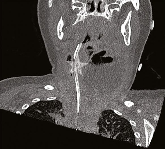 It was solely after she offered once more a number of days later with even worse signs – now together with lethargy, diminished blood movement, and a mass within the left aspect of her neck – that the supply of the affected person’s worsening situation was recognized.