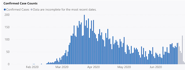 You will need to word that the variety of COVID-19 circumstances goes up modestly in King County, however that is being pushed by a close to doubling of assessments (word that the underside graph begins earlier). A lot of the media neglects to notice the significance of elevated testing to find extra circumstances.