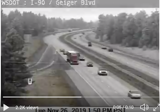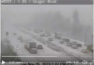 The onset of snow was very fast. Evaluate the WSDOT I-90 cam shot at Geiger Blvd at 1:50 PM Tuesday, with 2:07 PM. Fairly dramatic.