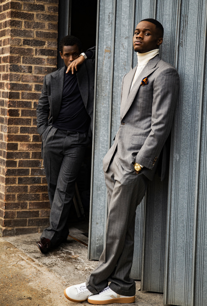 Ward has been modelling since his teenagers, however they each take a look at house right here. Slender, athletic, handsome males, items hold on them like they’re supposed to hold. However the garments we’ve put them in in the present day aren’t their typical model. Odubola loves a potent sweatshirt, whereas Ward likes his garments with quantity, “like my persona”.